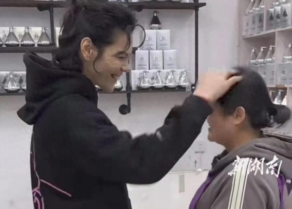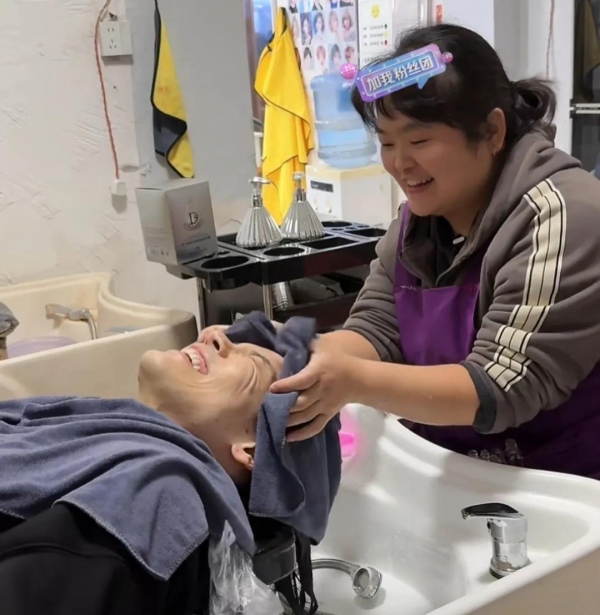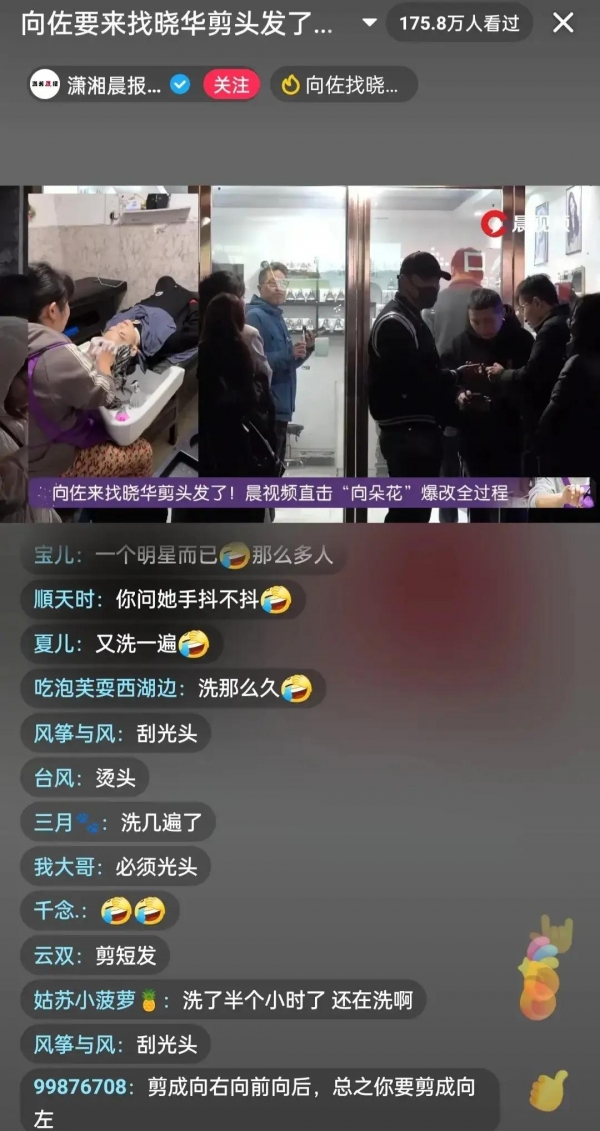 向左剪个头发,多家媒体现场直播,围的水泄不通!俩人边洗头发边聊天,聊的不亦乐乎,晓华乐的合不住嘴,肉眼可见开心的不行,洗完就开始动手剪了!