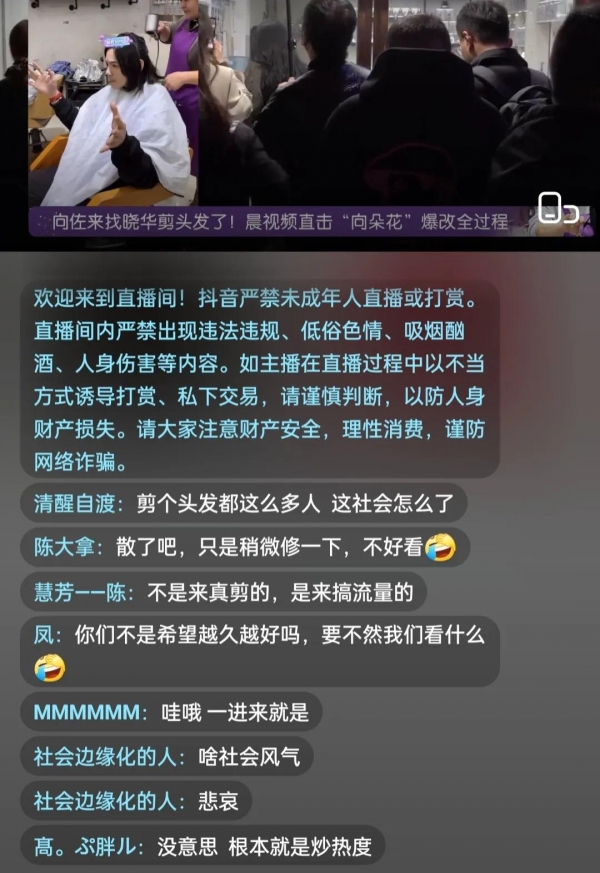 不少网友质疑为了带广告和带货,就稍微修一下,还这么大阵仗!剪的太少,稍微修下,被质疑是作秀!还有网友调侃晓华不敢下剪头。