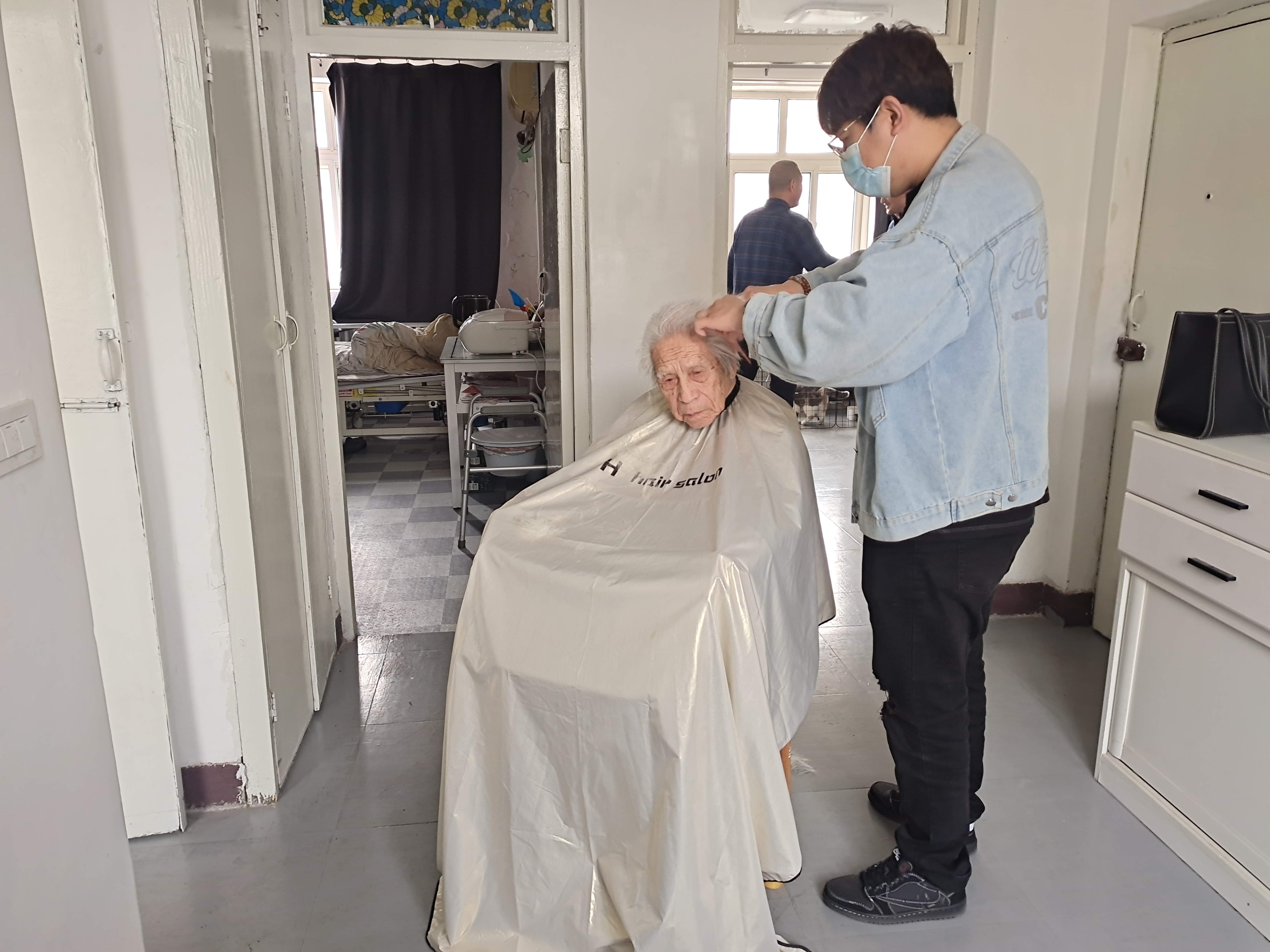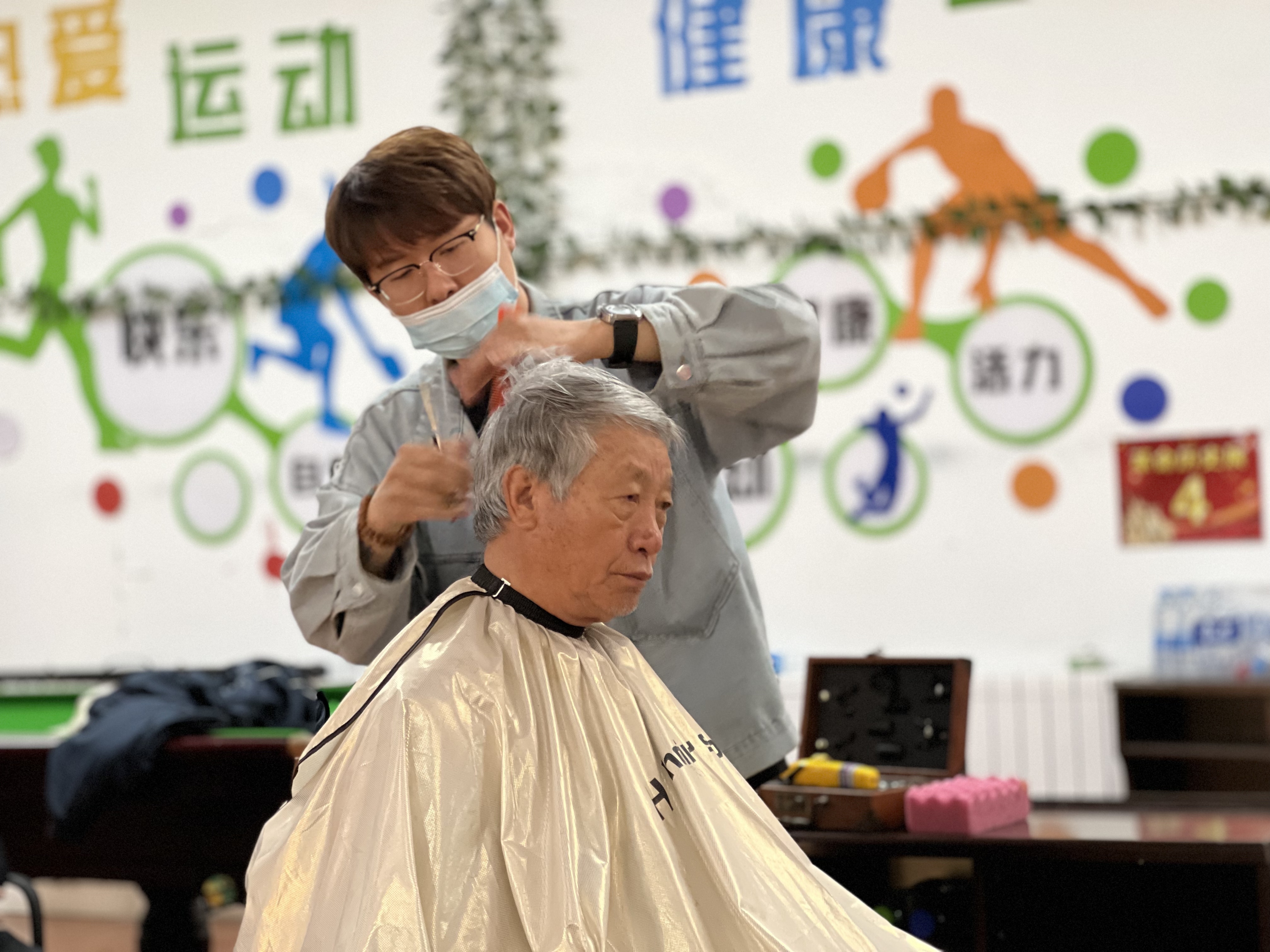 服务队的特殊关怀总在细微处闪光。为独居的退役老兵刘大爷理发时,志愿者特意留下稍长的鬓角:“刘叔当年戴军帽的照片多精神,咱们就理这个经典款!”面对年过九旬的抗美援朝老兵王志斌,服务队不仅带来理发服务,还悄悄修好阳台纱窗:“您看,现在能开窗透风又不担心蚊虫。”这些暖心细节,让服务对象、90岁的军属张奶奶逢人就夸:“这些孩子理的是头发,暖的是人心。”
